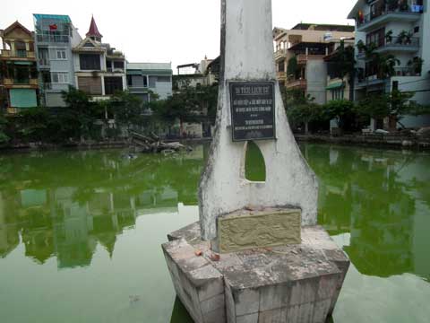 B52 crashed int this small lagoon surrounded by buildings and has never been removed. Now a memorial